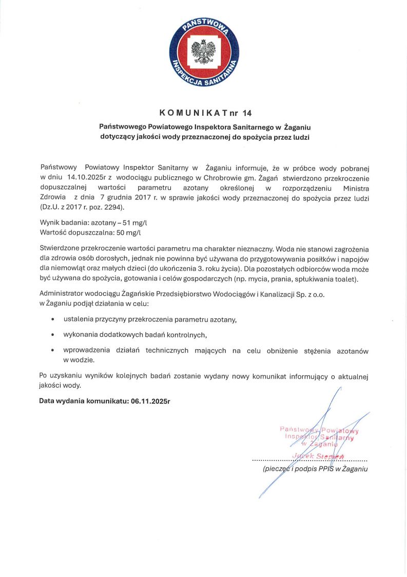 Żagańskie Wodociągi i Kanalizacje Sp. z o. o. informują, o zanieczyszczeniu wody.... (czytaj dalej)